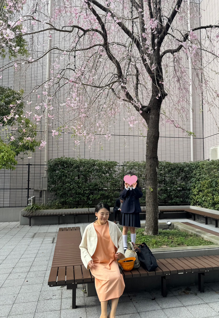 入学式用には半袖のワンピースを作りました。ミラ・ショーンのシルク生地で色はシャーベットオレンジです。ジャケットも作ろうと思ったのですが、そこまでは手が回らず、今回は手持ちのジャケットを着ました。10年以上前のジャケットなのでデザインはやや古い感じがしますが、こちらのクリーミーな色合いがお気に入りなので、まだ大切に着たいな~と思っています。